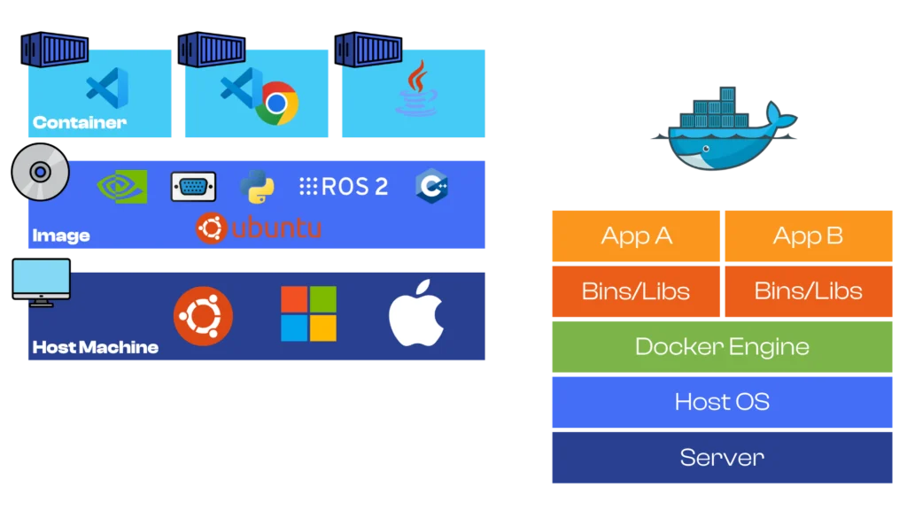 Deploy and manage your robotics applications effortlessly with Docker, the industry-standard platform for building consistent and portable environments.